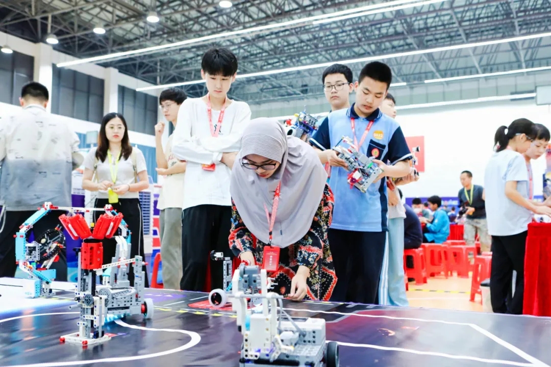 中鸣机器人超级轨迹赛作为此次赛事中的跨区域面向东盟国家青少年机器人邀请赛项目,吸引了东盟国家众多优秀选手参赛,共同探讨星际穿越的奥秘,选手们在这个集创意、学习、探索、拼搏、协作为一体的精彩舞台上,不仅展示了他们出色的机器人操作技能和创新能力,更在交流互鉴中增进了友谊。
